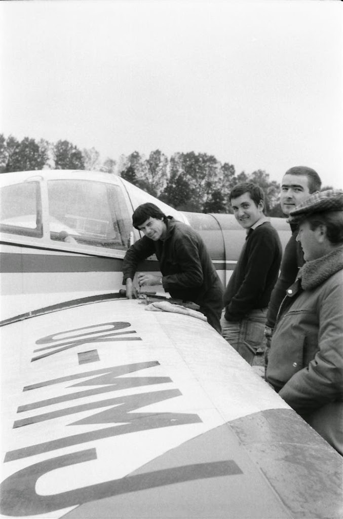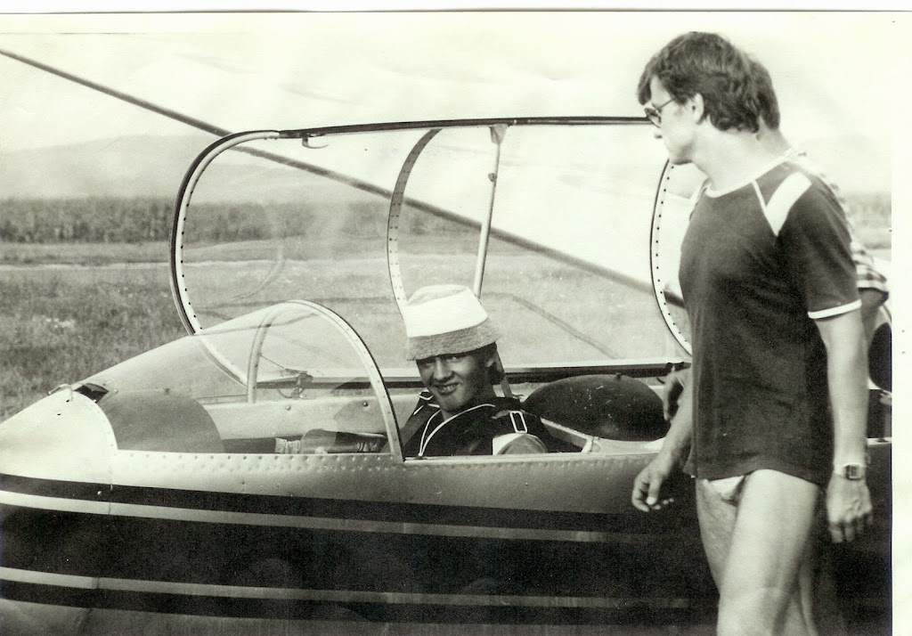 Miro Mlynárik pred sólom v základnom aeroklubovom oblečení - v montérkach. Dnes chodia žiaci na letisko v outdoorovom outfite